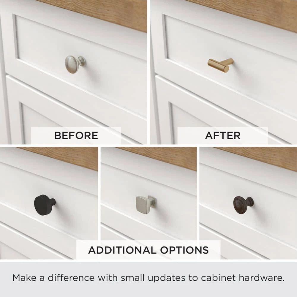 The Liberty 1-1/4 in. Satin Nickel Top Ring Round Knob adds a clean finish to the cabinetry in your home. A simple change can change the look and feel of any room. The knob is easy to install and comes with a 1 in. fastener that fits standard 3/4 in. drawer fronts and cabinet faces.