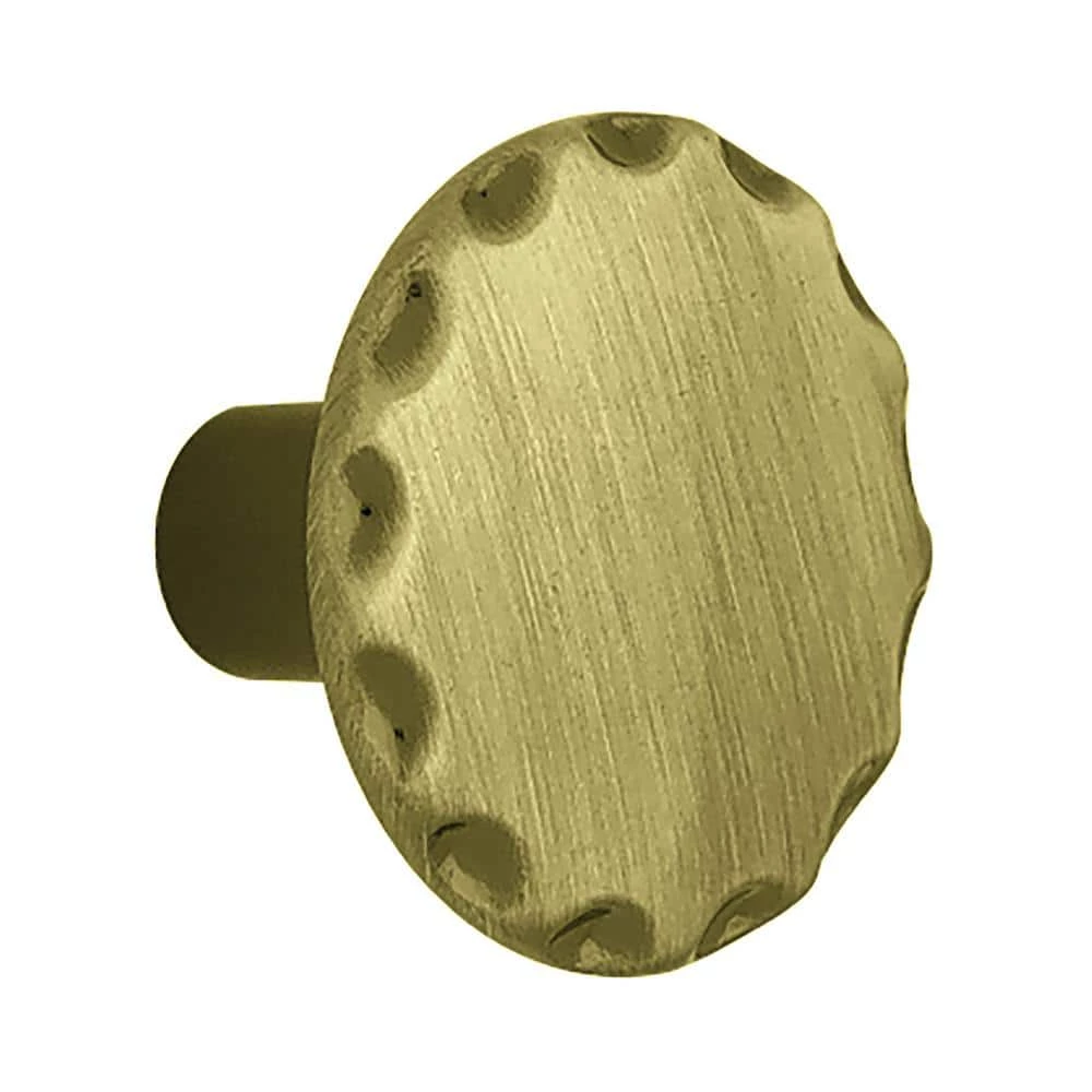 The Liberty 1-1/8 in. Scallop Edge Round Knob features a hand-rubbed antique brass finish and a subtle scallop design around the edge for a decorative look. Update your cabinet hardware to give any room a brand new look. Mounting hardware included for easy installation.