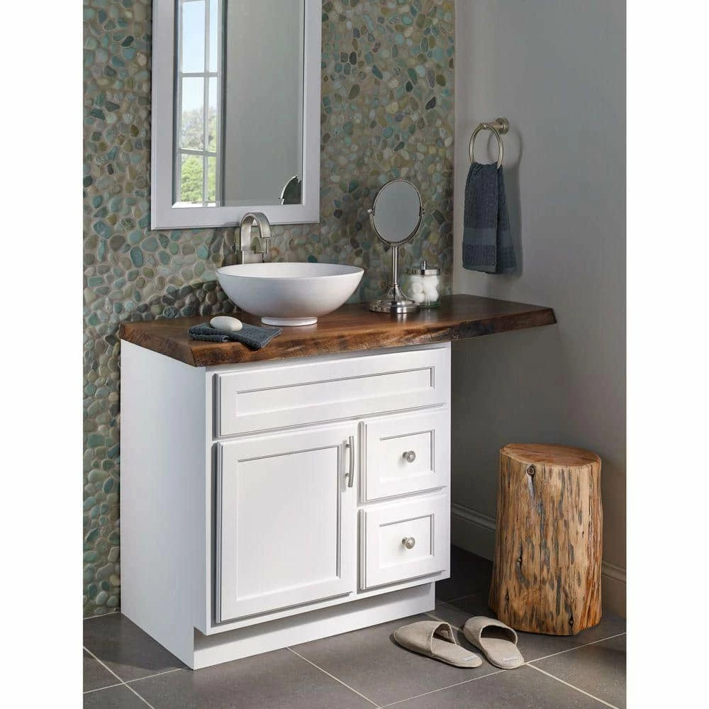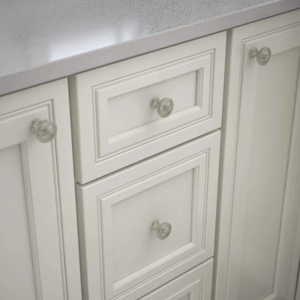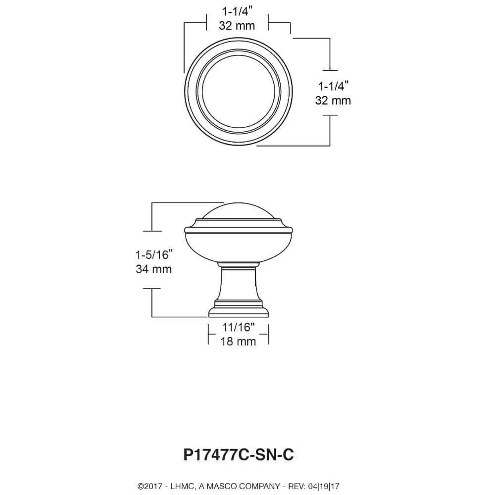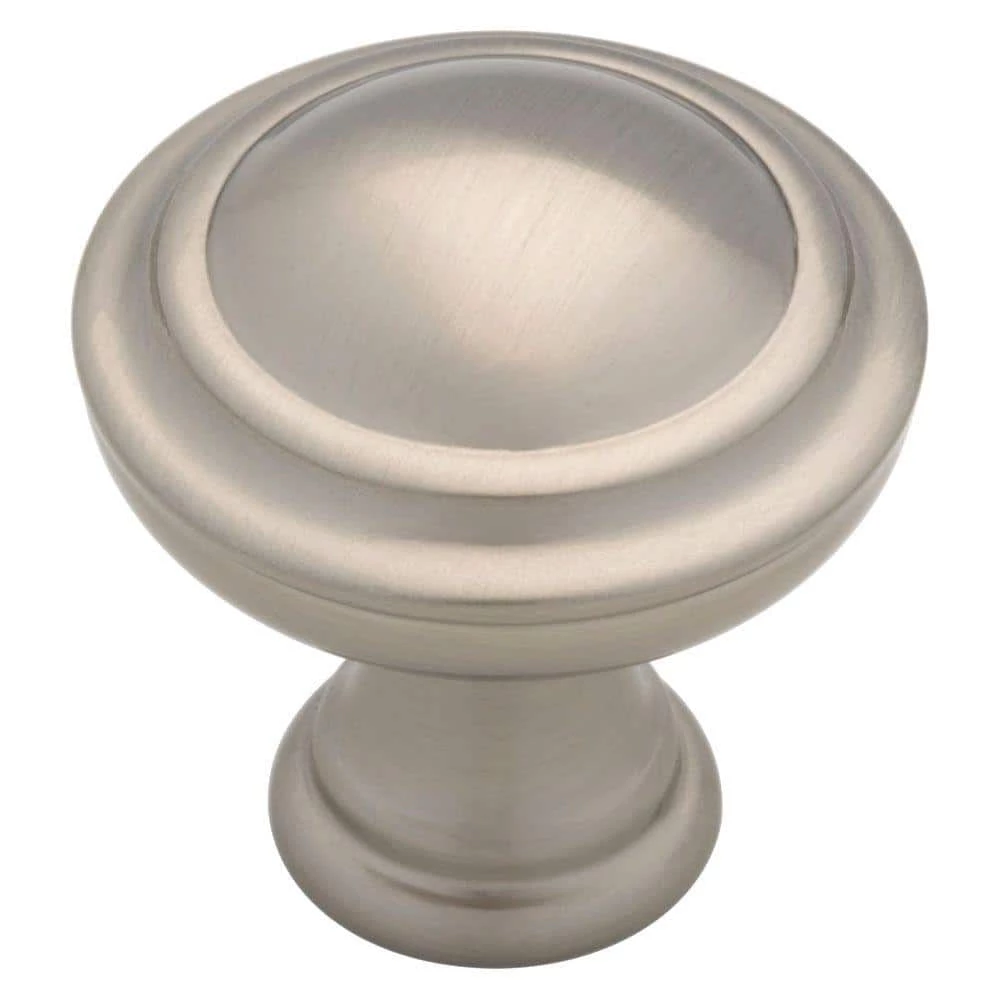 This round Liberty Calligraphy I 1-1/4 in. Satin Nickel Capital Knob can quickly add a touch of elegance to your decor. The simple design can make a nice accent in the kitchen or bathroom. Installation is easy and the necessary hardware is included.