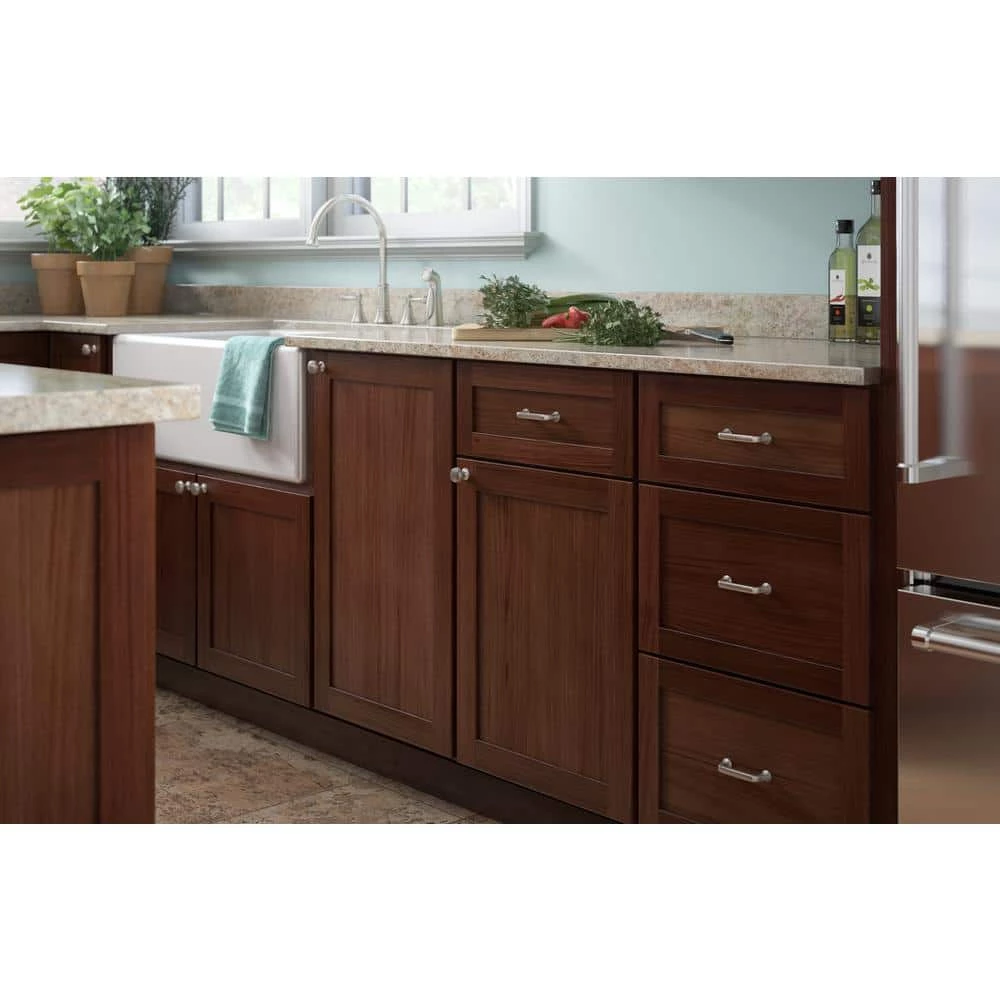 - Classic satin nickel finish complements a neutral color palette and coordinates with stainless faucets and appliances