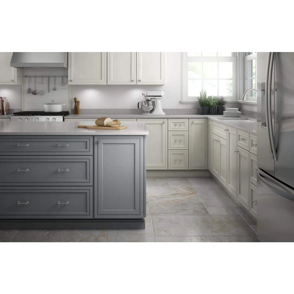 - Timeless satin nickel finish coordinates with a wide variety of cabinet finishes