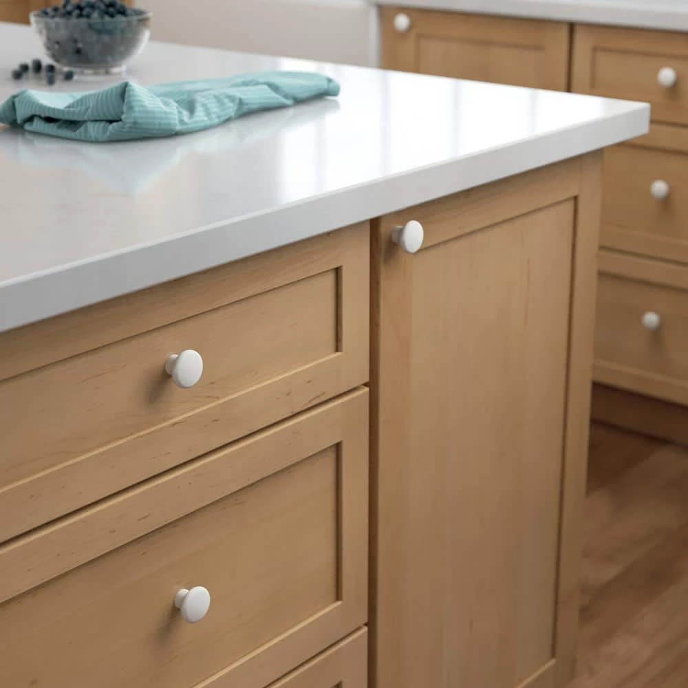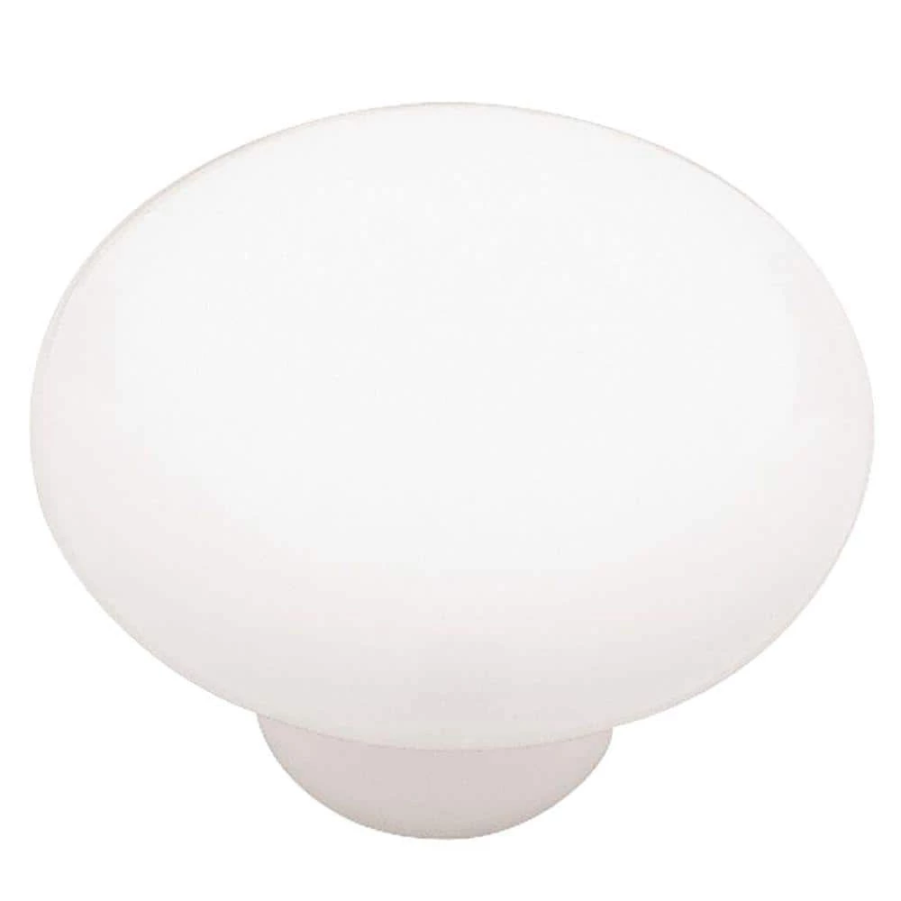 Use this Liberty 1-1/2 in. White Ceramic Mushroom Knob to enhance your kitchen or bathroom decor. It is designed for a 3/4 in. standard cabinet face or drawer front. Rear mount installation. Comes with machine screws.