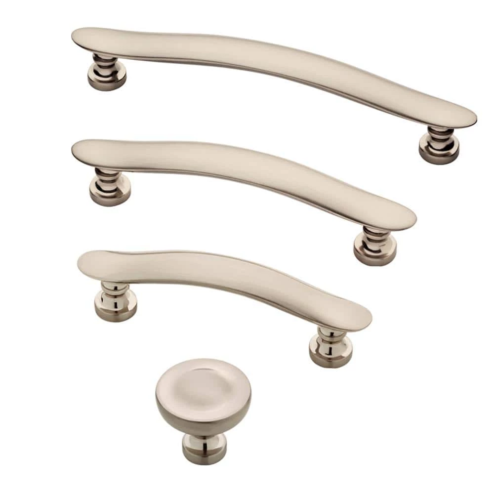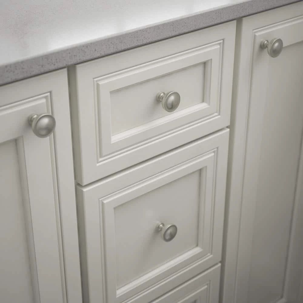- Satin nickel finish coordinates with a variety of cabinet finishes, from white to espresso