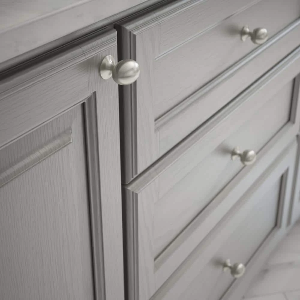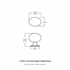 The Liberty Contempo Design 1-3/8 in. Large Football Knob adds a touch of style to your kitchen. The die-cast zinc body comes in a hand-applied satin nickel finish. The fasteners included are sized to fit standard 3/4 in. cabinet faces and drawer fronts.