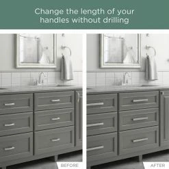 - Easily transition from standard size pulls to a longer length without having to drill new holes