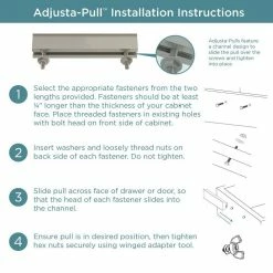 Looking for a unique size cabinet pull to fit old holes or cover an unfortunate drilling error? The 9 in. Inclination Adjusta-Pull (TM) cabinet handle from Liberty works with any measurement between 2 to 8-13/16 in.and offers the convenience of flexible sizing to meet your needs. Simply place the screws in your drilled holes, slide the pull over the screws, and tighten into place – no need for special hardware sizes, cabinet repair supplies, or wasted time drilling more holes!