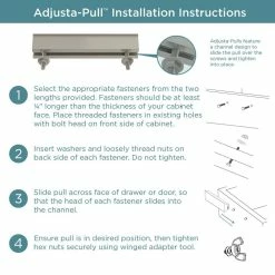 Looking for a unique size cabinet pull to fit old holes or cover an unfortunate drilling error? The 9 in. Inclination Adjusta-Pull (TM) cabinet handle from Liberty works with any measurement between 2 to 8-13/16 in.and offers the convenience of flexible sizing to meet your needs. Simply place the screws in your drilled holes, slide the pull over the screws, and tighten into place – no need for special hardware sizes, cabinet repair supplies, or wasted time drilling more holes!