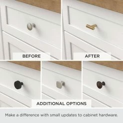 - For cabinets with pre-drilled holes you can easily swap out the hardware without the use of power tools