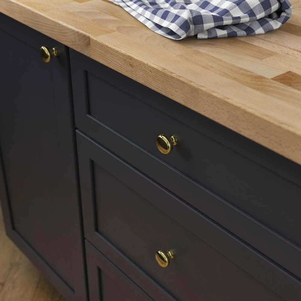 The Liberty 1-1/4 in. Polished Brass Round Knob updates drawers or cabinetry with decorative, classic detail. Die cast zinc base material is high quality. Update your cabinet hardware to give any room a brand new look. Installation hardware included.
