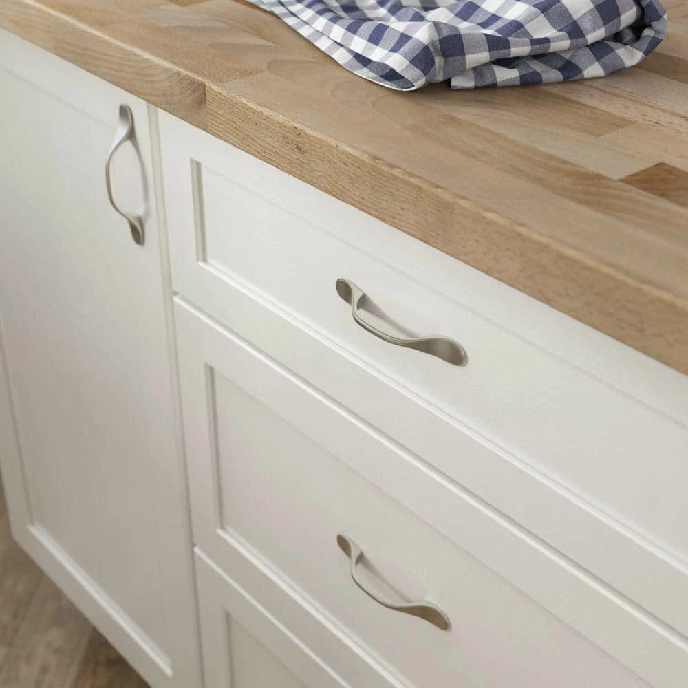 The Liberty 3 in. Satin Nickel Spoon Foot Pull adds a modern style to your cabinets or drawers. With its elegant lines and a beautiful finish the Spoon Foot pull adds a contemporary look and feel to your room. Ideal for kitchens or bathrooms and installation is easy with hardware included.