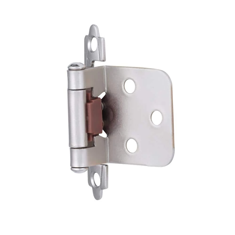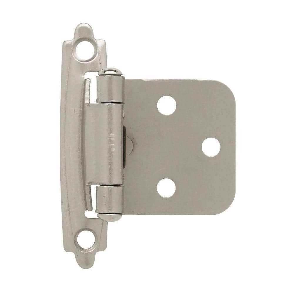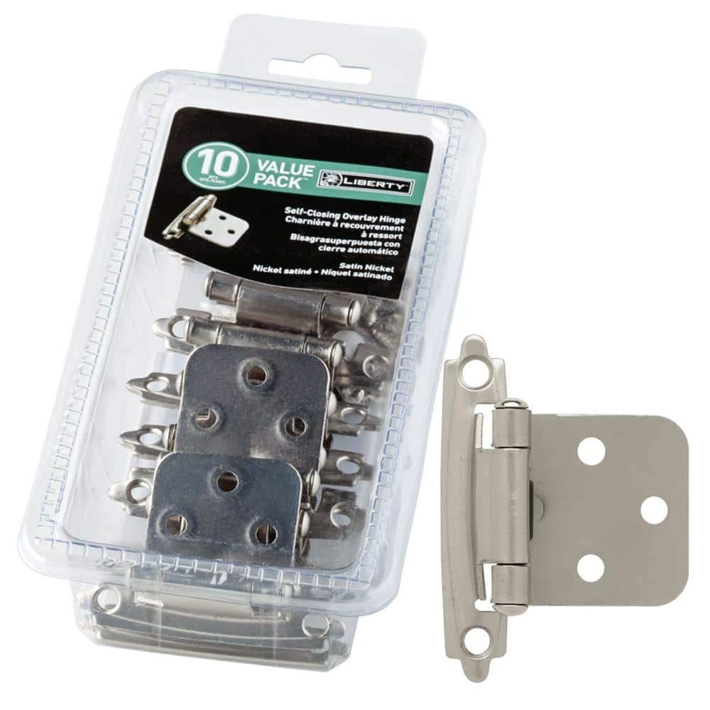 The Self-Closing Overlay Hinges (10-Pack) make it a breeze to mount cabinet and vanity doors. The hinges feature steel construction for durability and a satin nickel finish to add an attractive look.