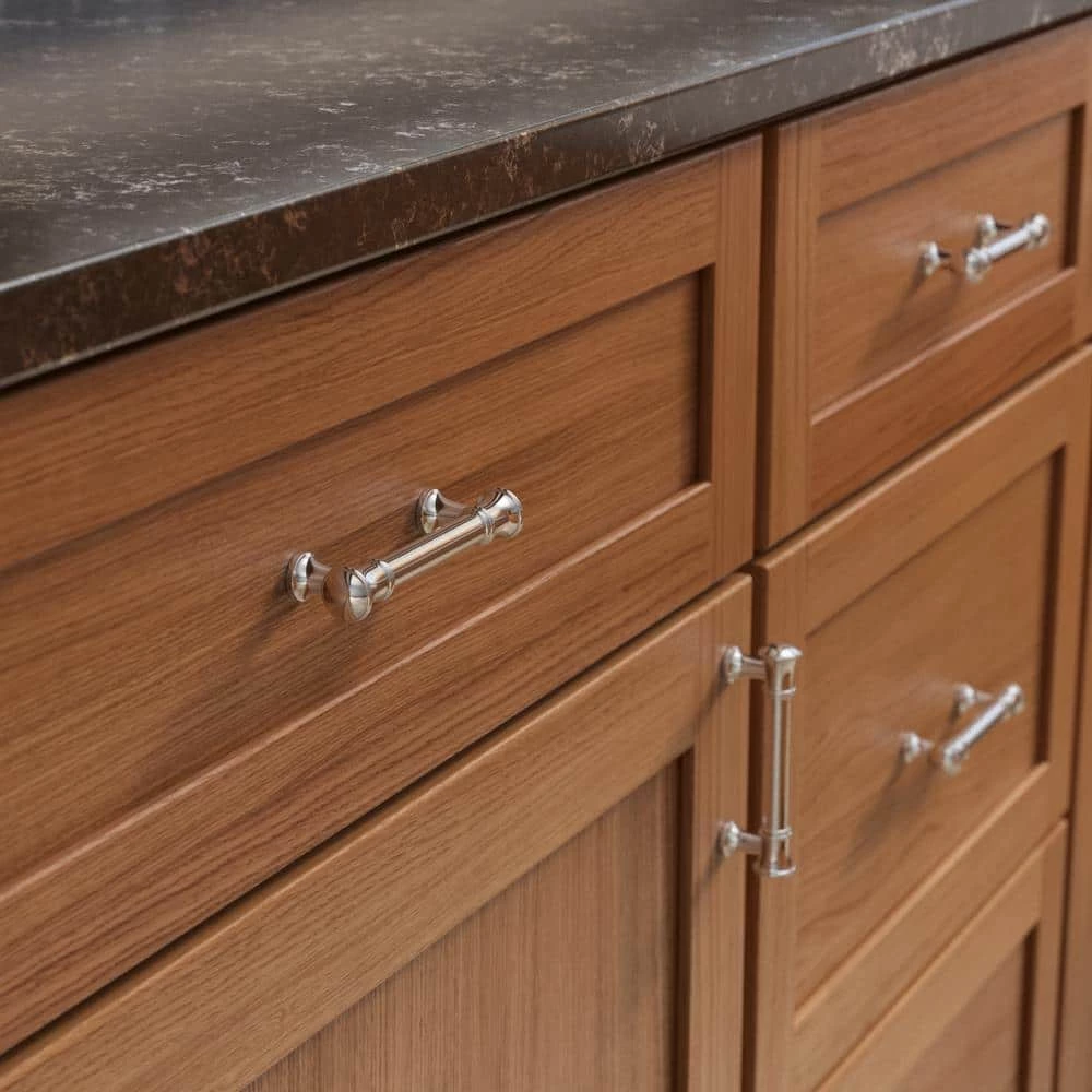 - Polished chrome finish is ideal for white or dark cabinets and vanities