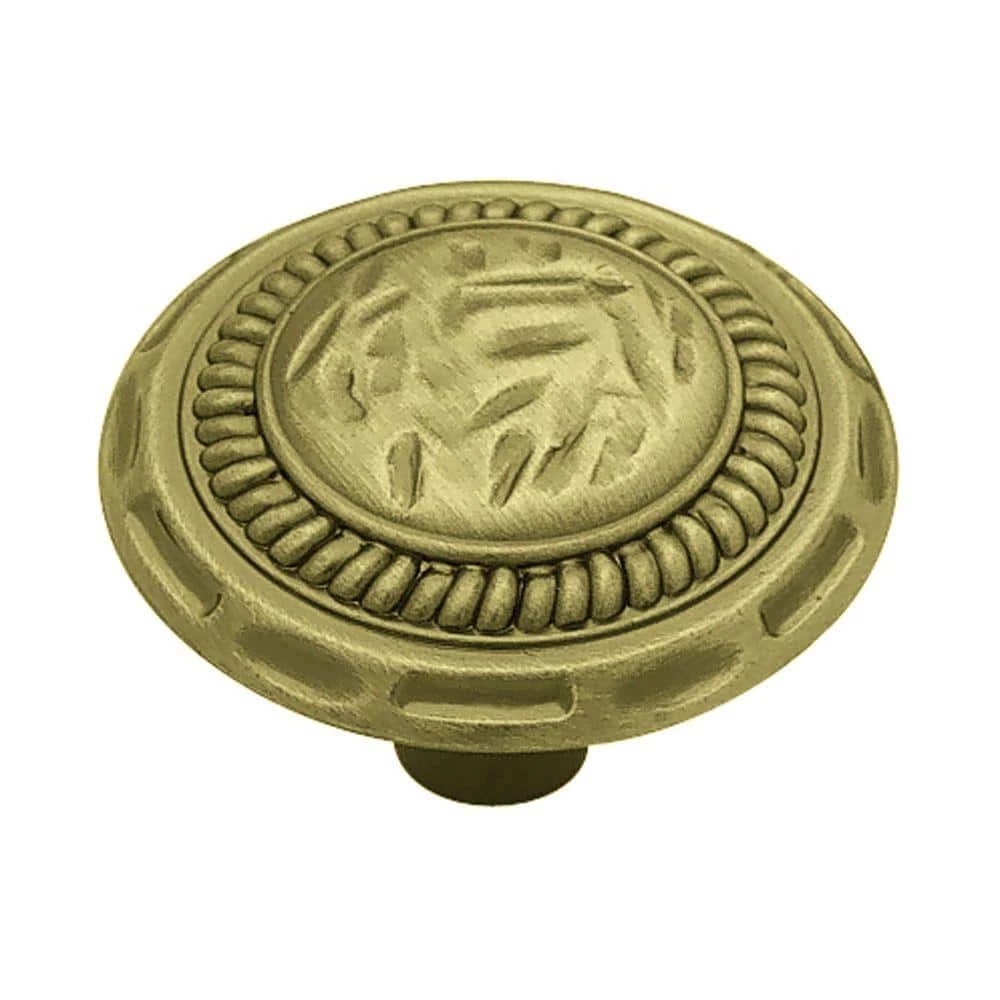 The Liberty 1-3/8 in. Antique Brass Sundial Round Knob accents traditional home decor with a hand-rubbed finish and elegant, distinct style. Update your cabinet hardware to give any room a brand new look. Mounting hardware included for easy installation.