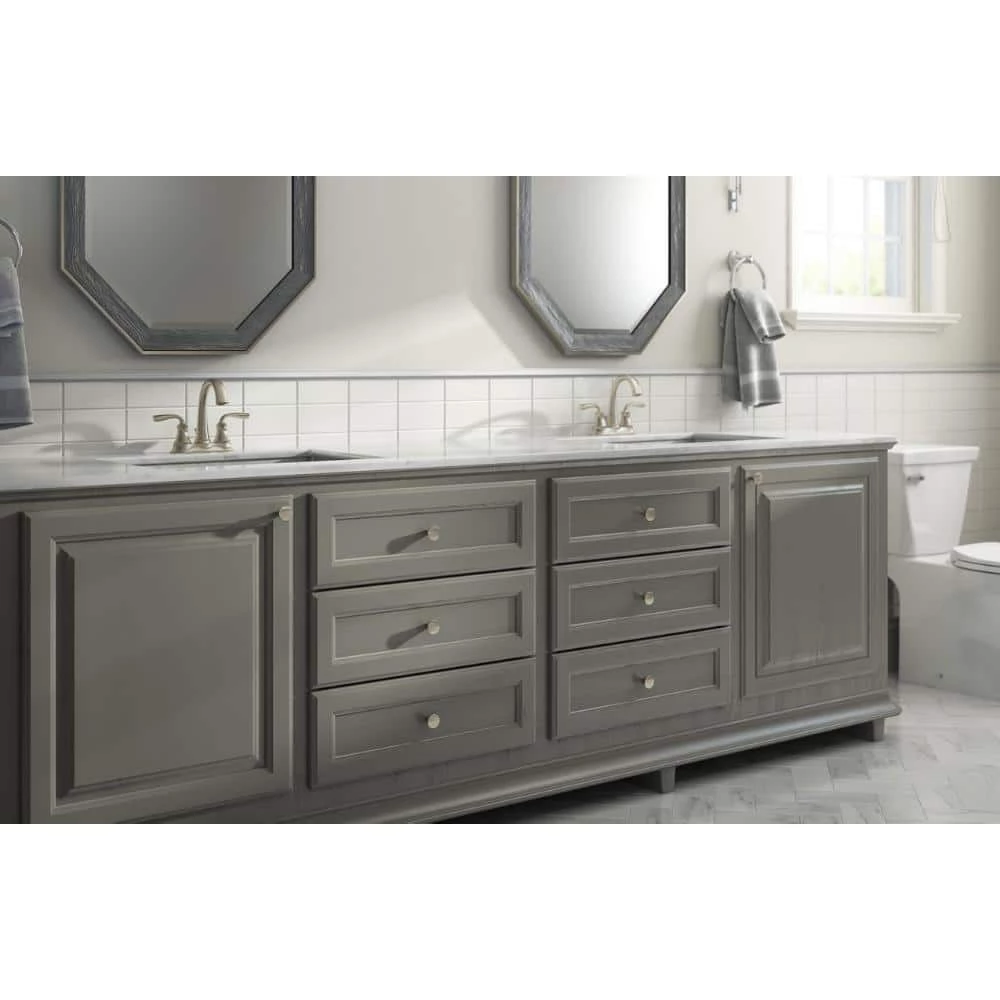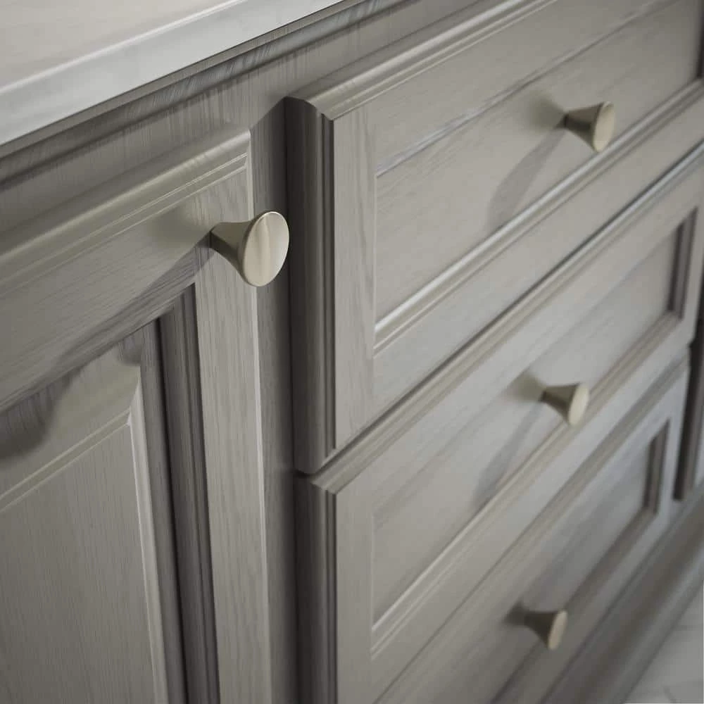- Timeless satin nickel finish coordinates with a wide variety of cabinet finishes