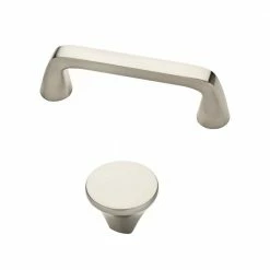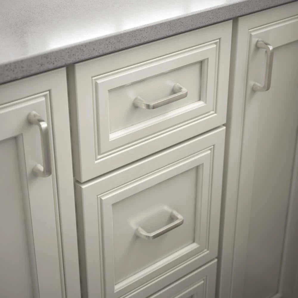 - Timeless satin nickel finish coordinates with a wide variety of cabinet finishes