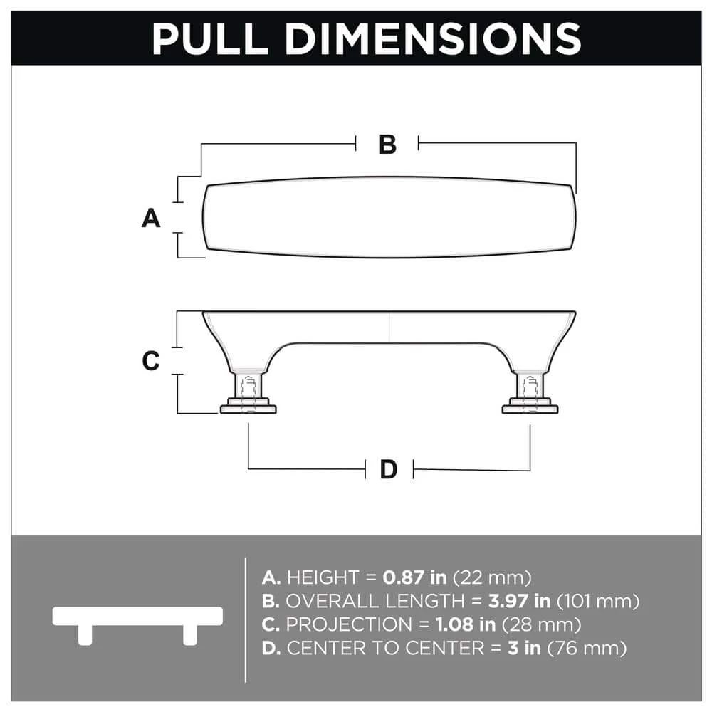 - 3 in. (76 mm) center to center screw mounting, rear-mount installation