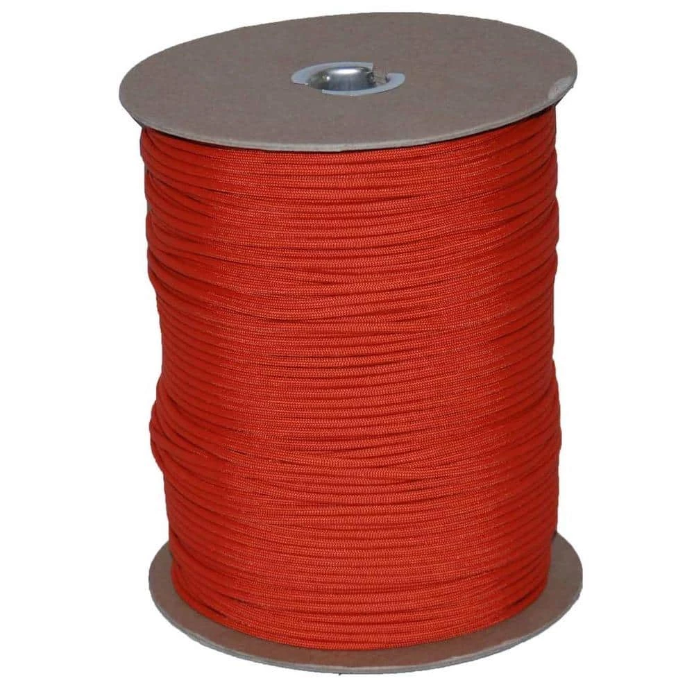 Paracord in 1000 ft. spools. A smooth, strong cord that is great for camping, hiking, survival bracelets and more. The cord has a 300 lb. break strength.