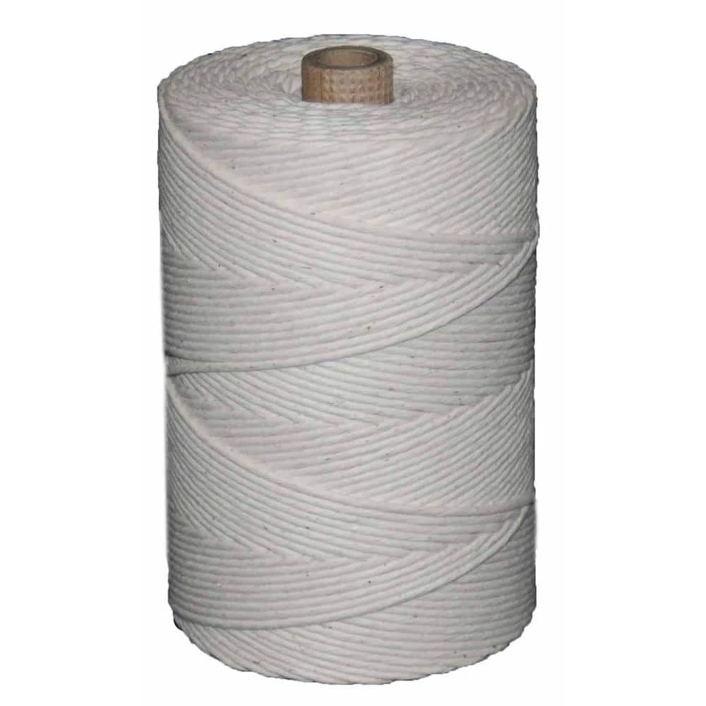 This is a true polished cotton beef twine made for tying meats. It is made from our cotton/polyester twine coated with a wax emulsion with acrylic thermosetting polymer. The result is a smooth tying twine that does not flare or unravel when cut.