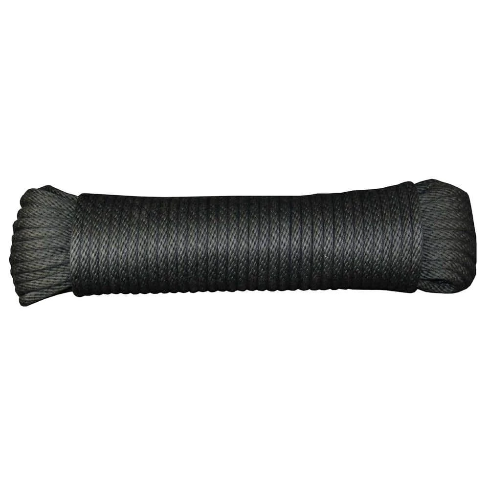 A black spun polyester cord with synthetic core. Sold as a theater cord, but has many other uses where a black cord is needed. This cord is easy to work with and holds a knot.